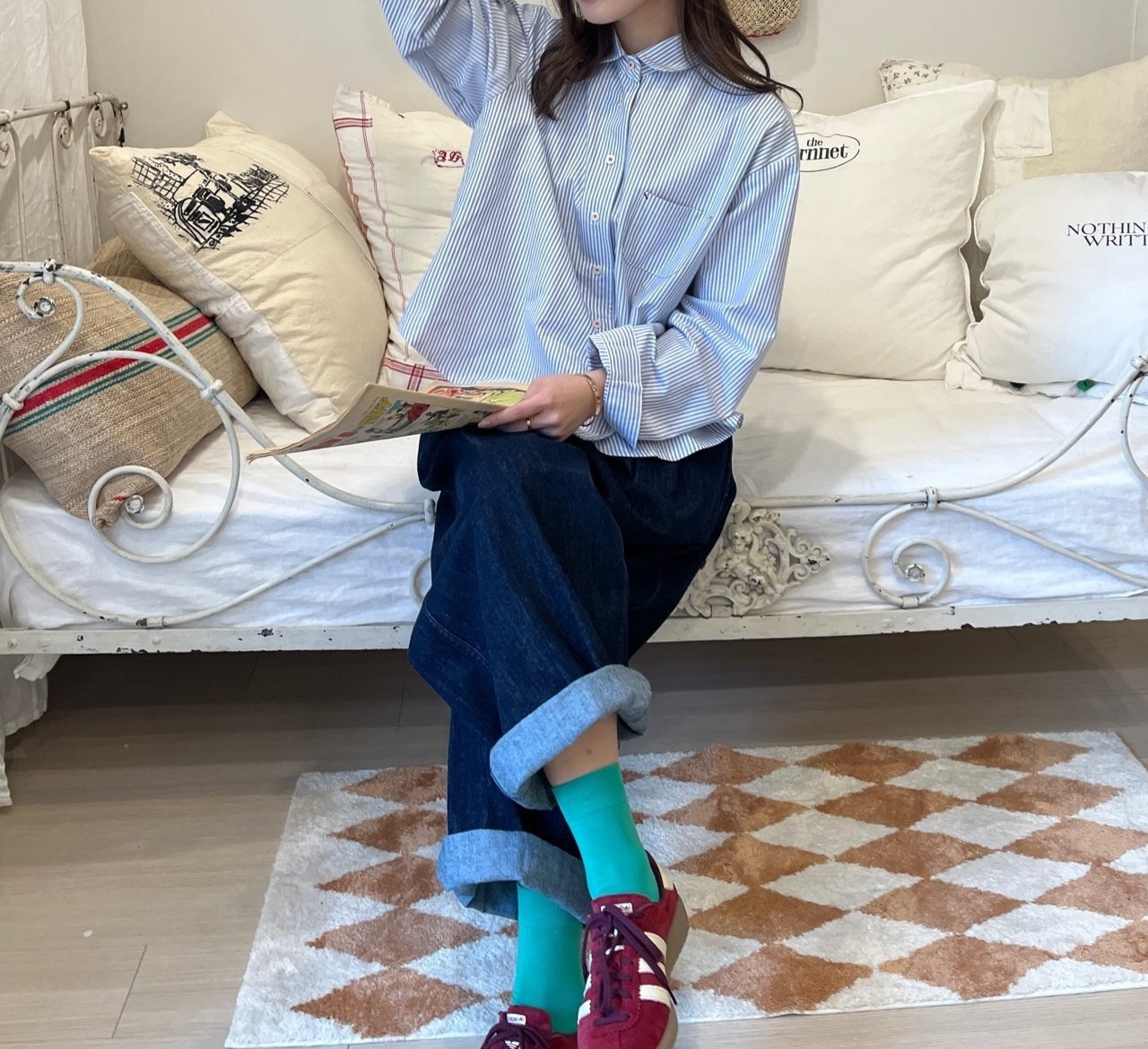 COLOR 화이트 / 소라(스트라잎) / 블랙체크